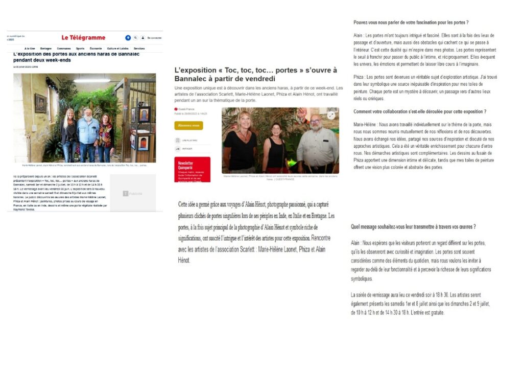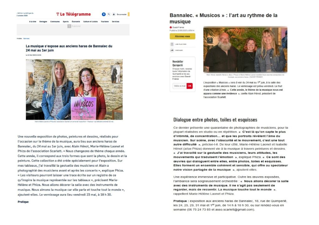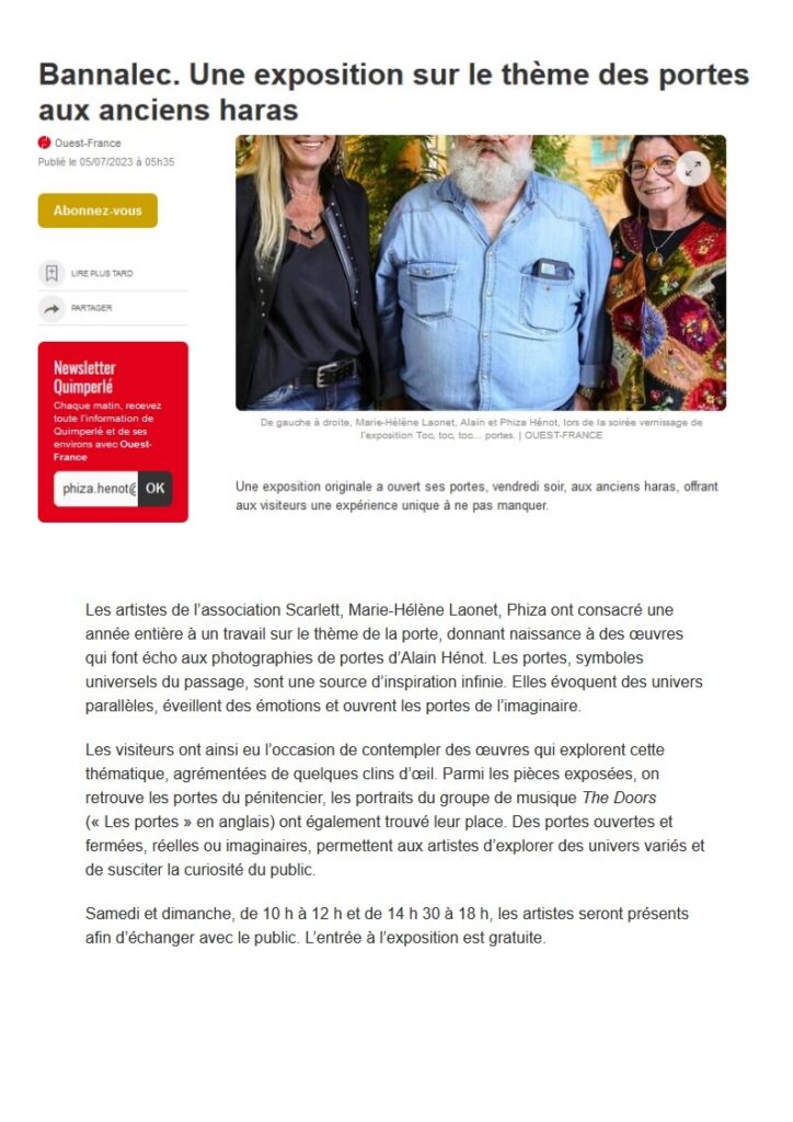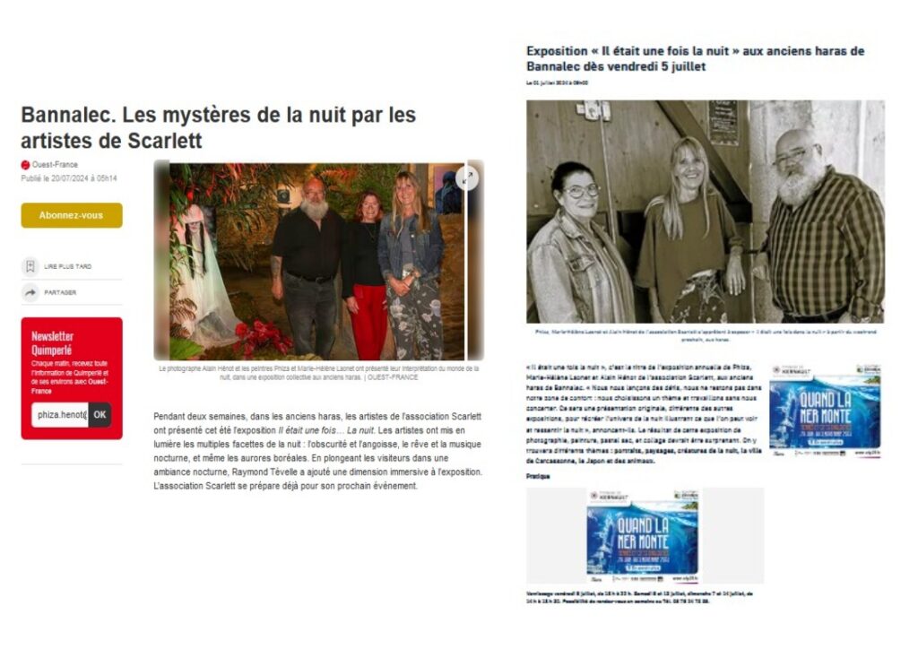 Les artistes de Scarlett ont imaginé une exposition collective sur le thème des 50 ans de « Mai 68 ». « Goodbye World », du 25 au 27 mai aux Haras, leur permet de s’exprimer avec leurs talents créatifs, sur les événements, un demi-siècle plus tard.« Dire au revoir à un monde »Présidente de Scarlett, Delphine Baudic a expliqué le titre de la nouvelle exposition : « Nous avons choisi ce titre de film pour nous exprimer sur ce que nous ne souhaitions plus voir ou subir. C’est l’occasion de dire au revoir à un monde particulier, dire ce qui nous dérange ou ne nous plaît plus ». Quel lien avec Mai 68 ? : « Hasard du calendrier avec notre manifestation. Mais on s’est tous rendu compte que nous avions des choses à relater sur ces événements ». Pourtant, peu d’artistes de l’association ont vécu cette époque : « Les créations artistiques ont été nombreuses à ce moment-là, on s’en inspire encore ». Quasiment tous les artistes de l’association exposent sculptures, peintures, et font des performances. « La musique fait partie des Arts, si à l’issue de l’exposition, le samedi, un repas concert avec Brats est prévu à 20 h, le dimanche, ce sera une performance avec poésie et guitare ». Un poulet coco sera servi.Pratique